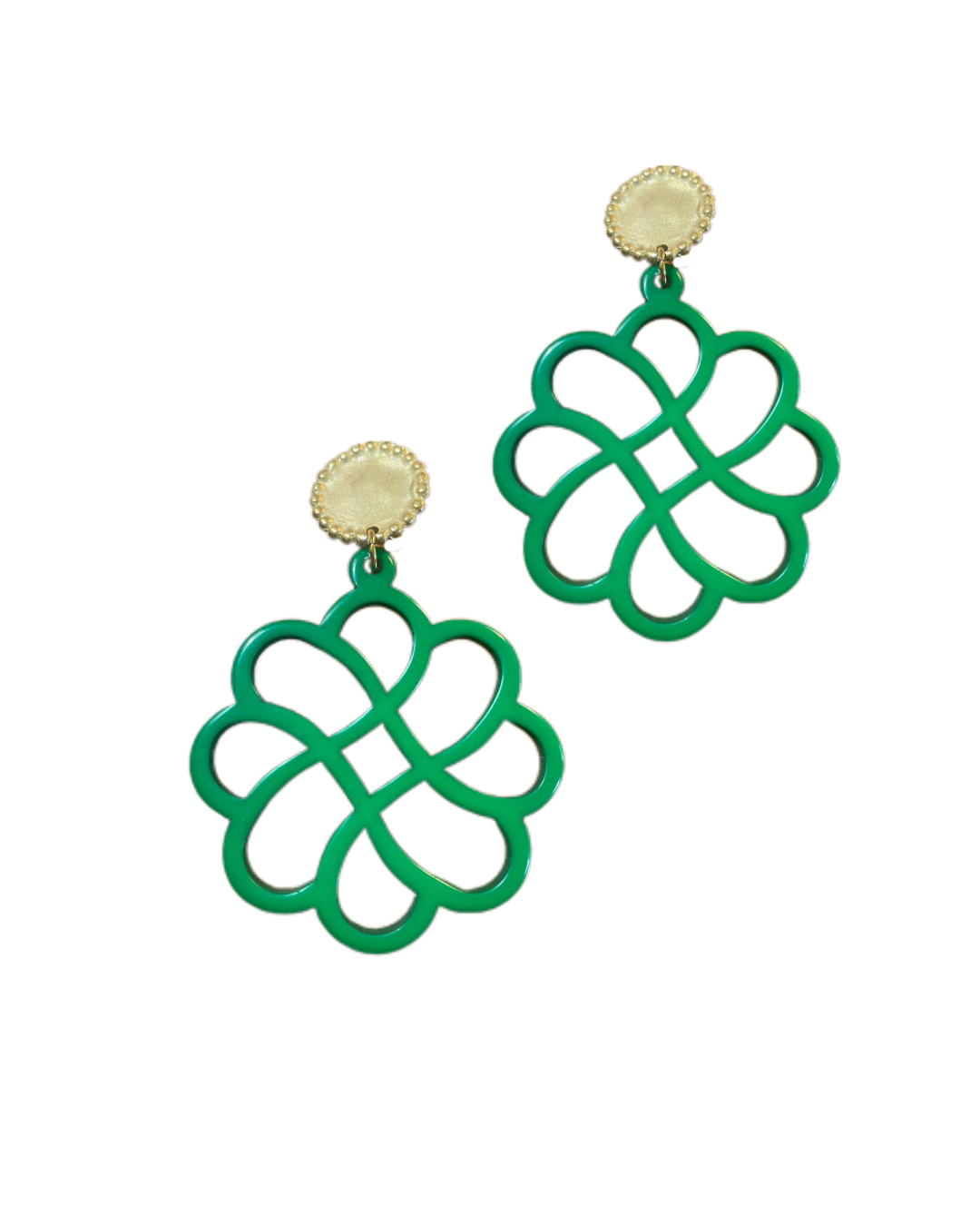 Jedes Paar wird in Indien mit großer Sorgfalt und handwerklichem Geschick gefertigt – ein Prozess, bei dem jedes Detail zählt und kleine Farbnuancen den einzigartigen Charakter der Ohrringe unterstreichen. Das Oberteil besteht aus vergoldetem, nickelfreiem Schmuckmetall und sitzt angenehm mittig am Ohr – ein stilvoller Akzent mit besonderem Flair.
