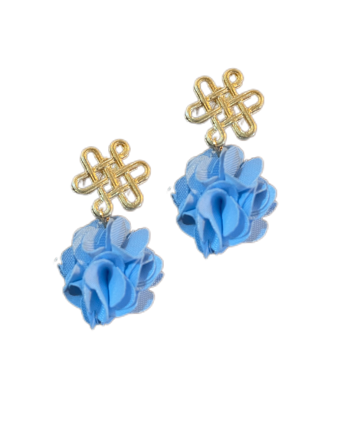 Entdecken Sie zeitlose Eleganz mit unseren 'Glücksknoten & Fleur Blumen Pompom Ohrringen. Jeder Ohrring präsentiert stolz einen goldenen Glücksknoten, woran eine leichte Kreation aus Blütenblättern hängt. Ihr Unikat für einen Hauch von Luxus im Alltag. Der Ohrring ist federleicht und sitzt mittig am Ohr