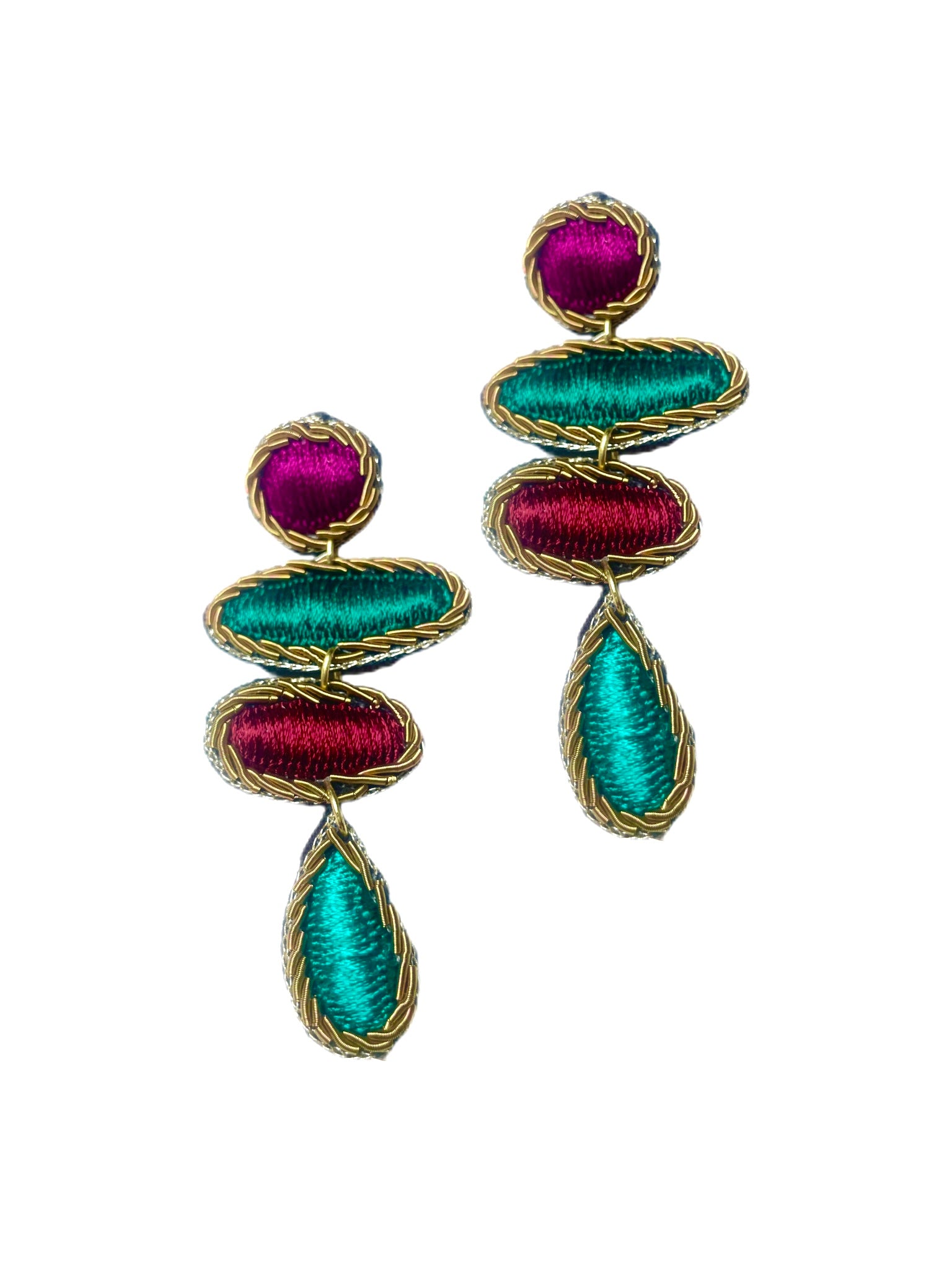 Ein Ohrring, so leicht wie ein Lächeln und so vielseitig wie dein Alltag. Handgefertigt in unserem Atelier in Delhi, aus feinen Seidenfäden und umrahmt von einer goldenen Kordel.