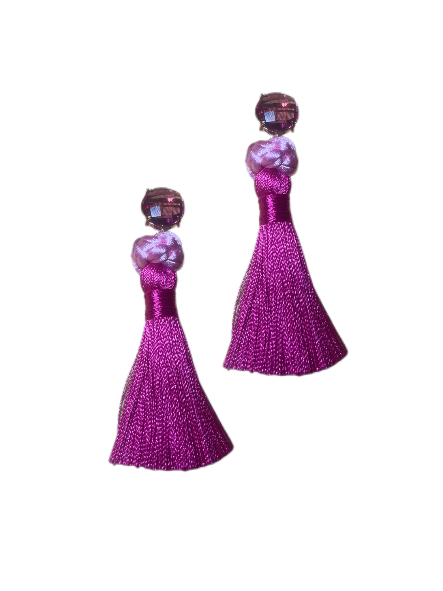Endlich ist unser ikonischer Nodo Ohrring online! Diese Ohrringe sind unsere eigene Kreation und werden von uns handgefertigt, um höchste Qualität und einzigartiges Design zu gewährleisten. Der Ohrring hängt an einem vergoldeten pinken Kristall Top, welches gut am Ohr sitzt, darauf folgt ein handgearbeiteter rosa Nodo gefolgt von einer pinken Quaste aus Seide.
