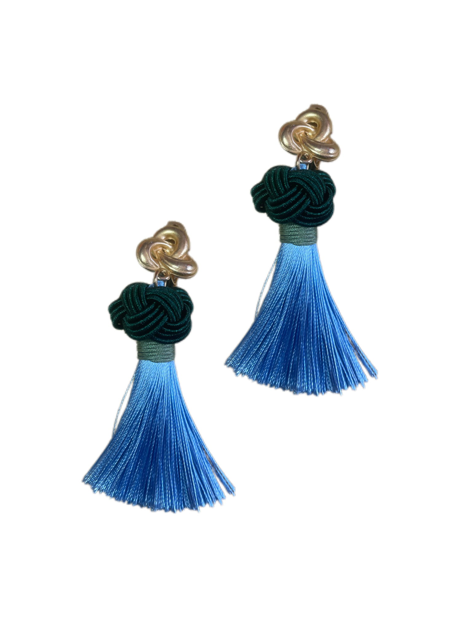 Endlich ist unser ikonischer Nodo Ohrring online! Diese Ohrringe sind unsere eigene Kreation und werden von uns handgefertigt, um höchste Qualität und einzigartiges Design zu gewährleisten. Die dicke Quaste höngt an einem vergoldeten Ohrring, welcher gut am Ohr sitzt, darauf folgt ein handgearbeiteter dunkel grüner Nodo gefolgt von einer hellblauen Quaste aus Seide mit Olive grünem Detail.